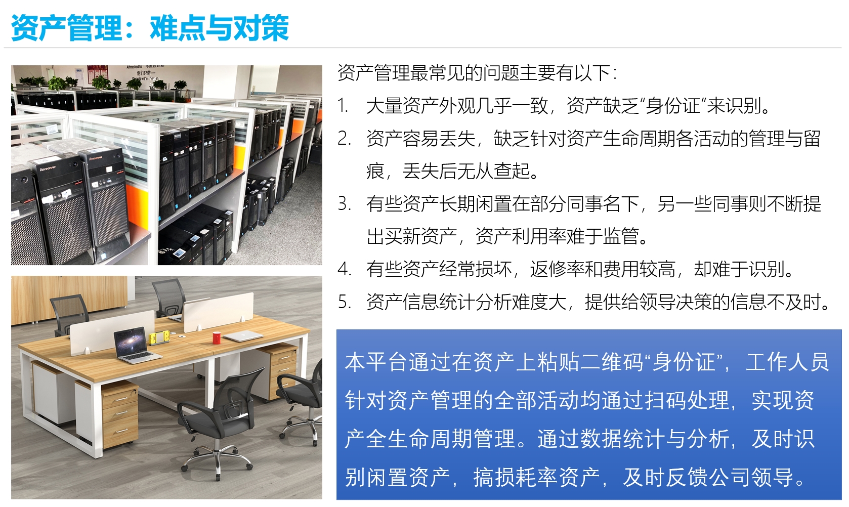 慧维资产全生命周期管理系统是一套可用于各类大中小企业、酒店、工厂、仓库、商超、医院、学校、政府、军队等多种场景下的资产管理系统,其具备以下特性:
